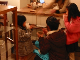 お姉ちゃんも真似て飲むがやはり熱い