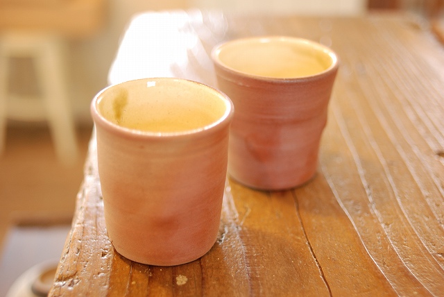 内側は、キナリの粉引きになっており、お飲みものの色が楽しめます☆