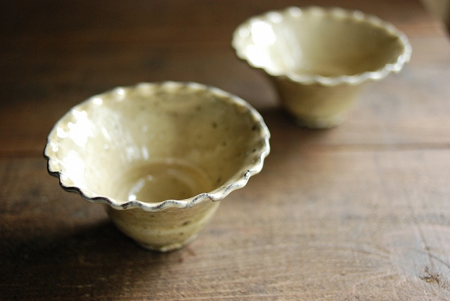 ■灰釉粉引 輪花小鉢