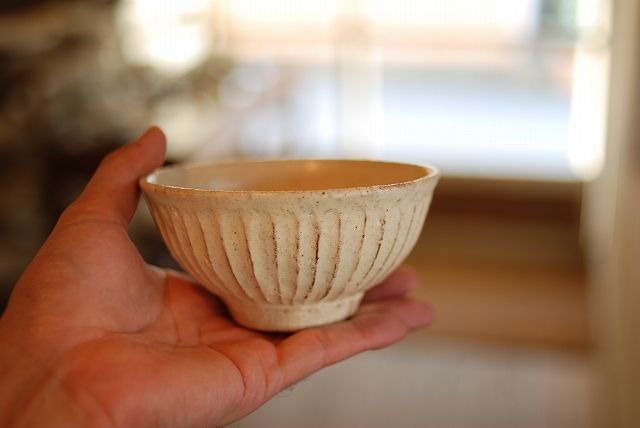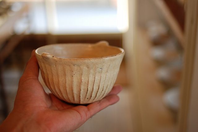 ポッテリと優しい手触りの小野さんの粉引き