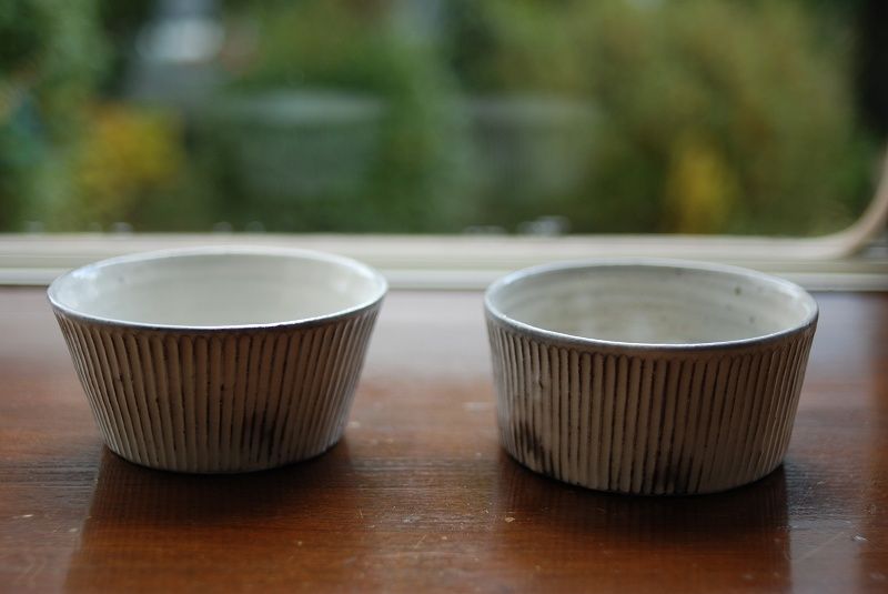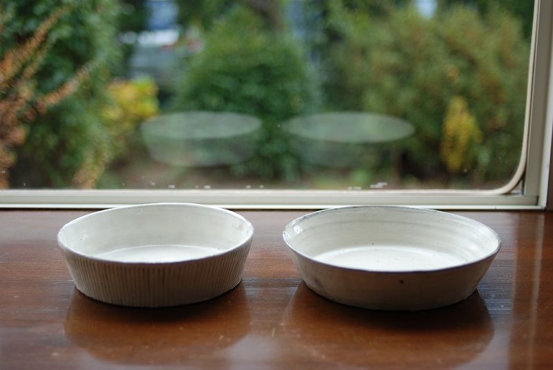 ■粉引しのぎ台形鉢と、粉引7寸ドラ鉢