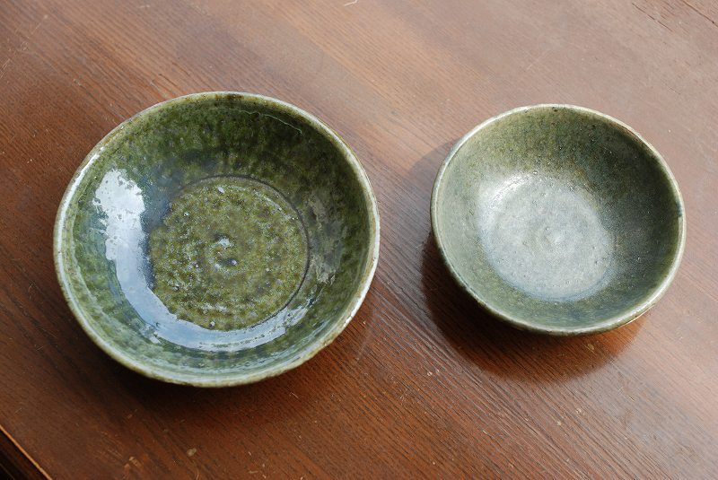 ■緑釉 ご飯茶碗 大、小