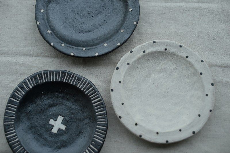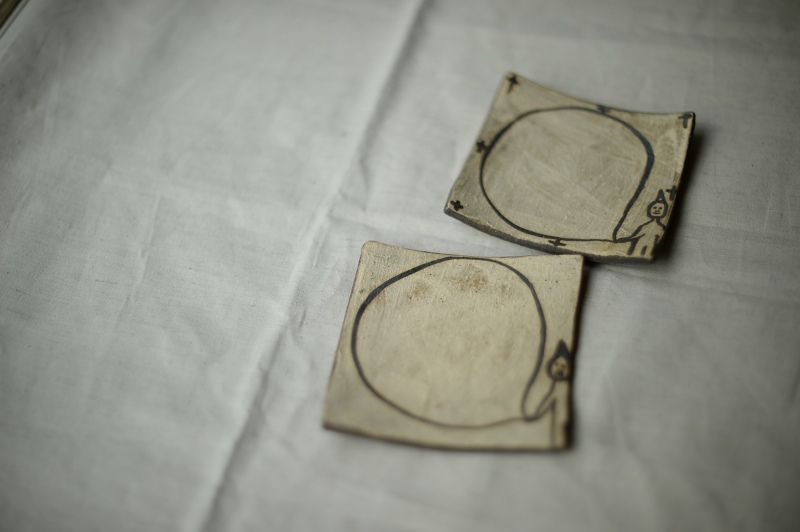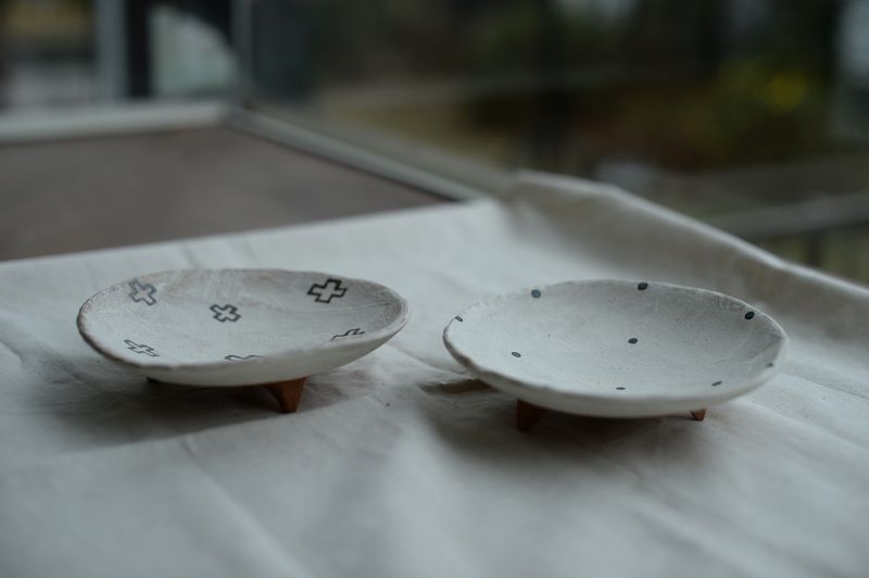 康介さんの轆轤と、れなさんの模様。