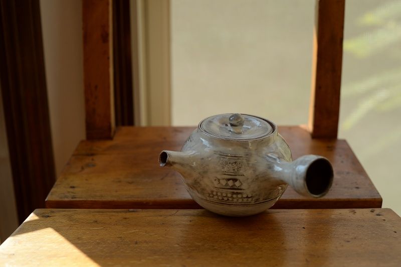 22、灰釉粉引急須