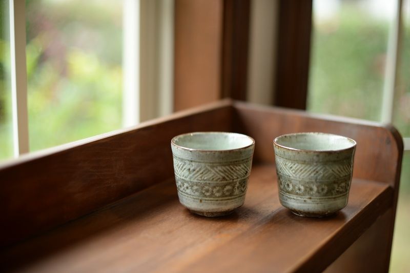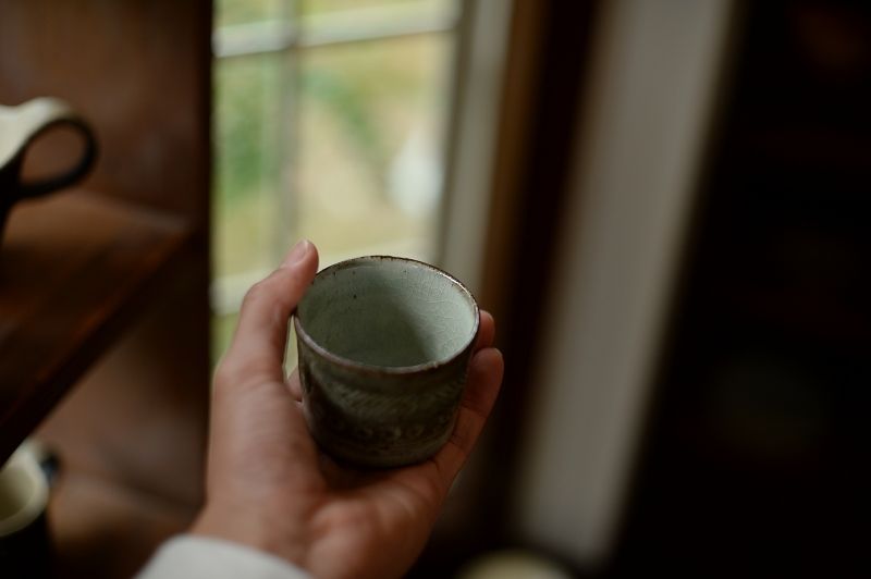 4、灰釉三島湯呑