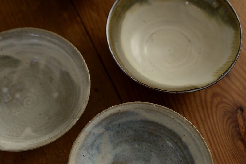 68、灰釉粉引6寸鉢たち