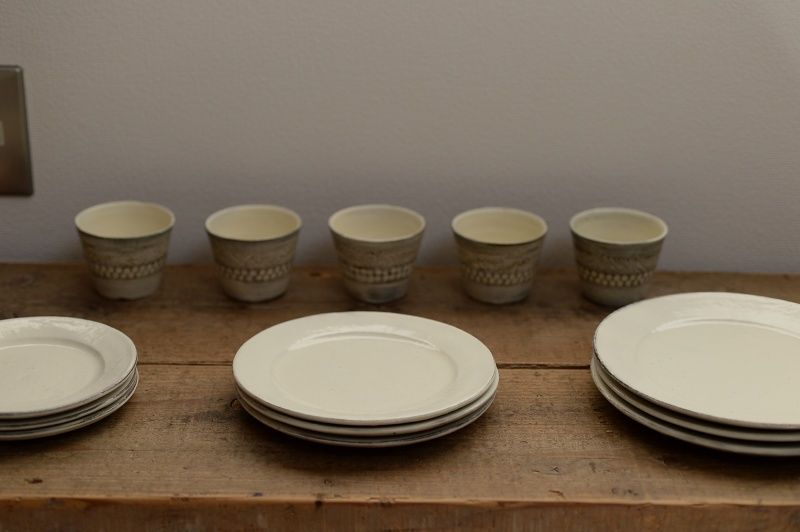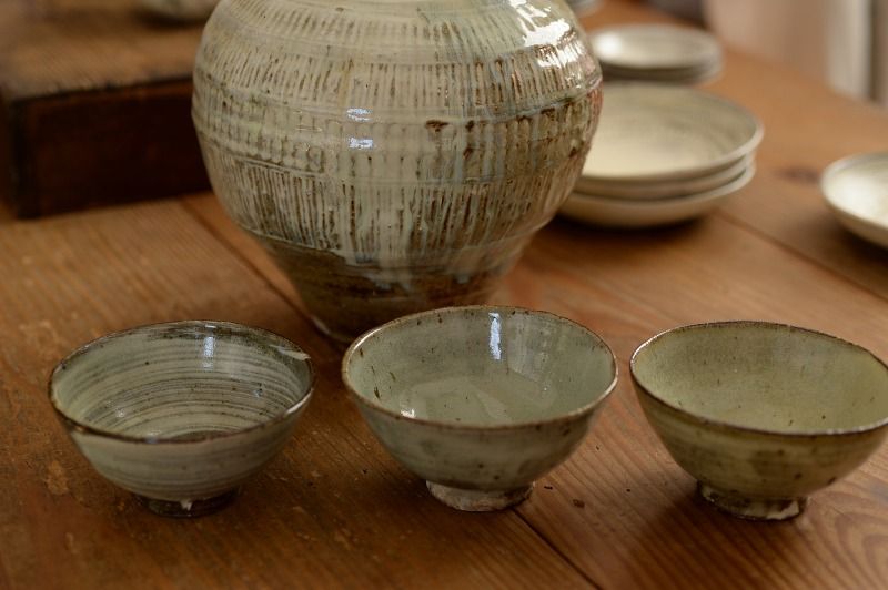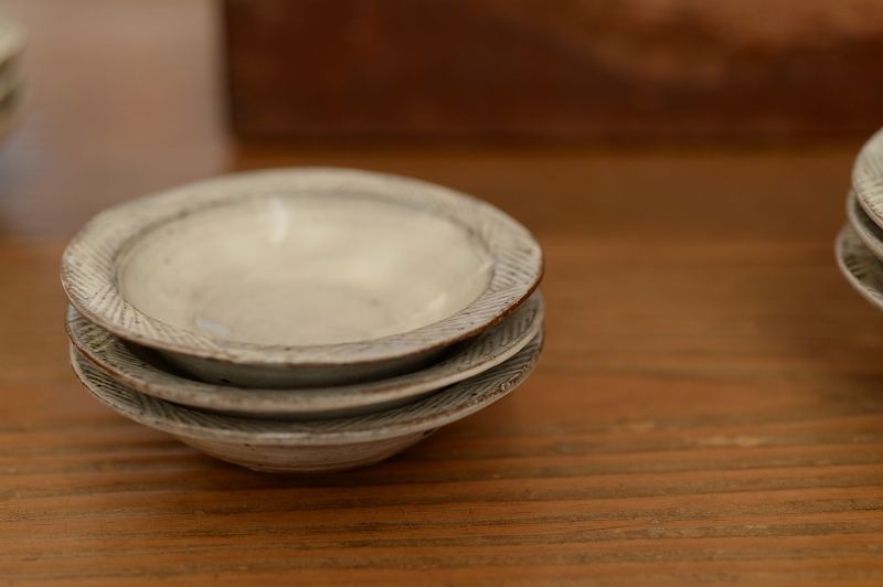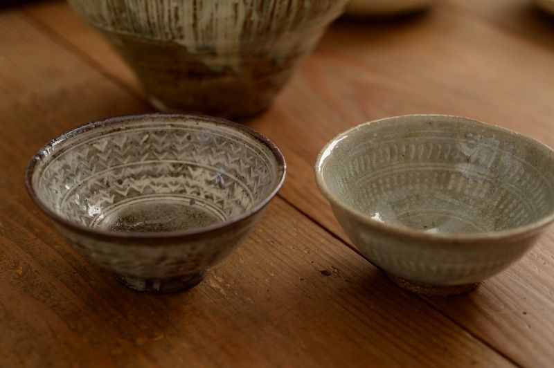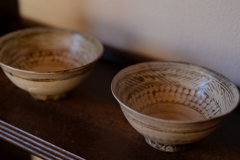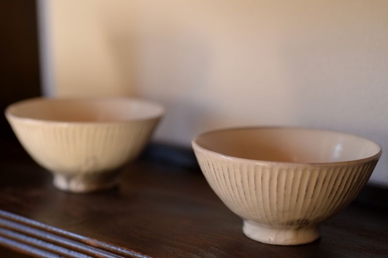 72、灰釉粉引めしわんたち