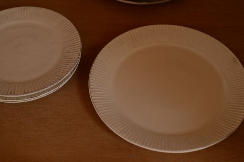 54、粉引しのぎリム8寸皿
