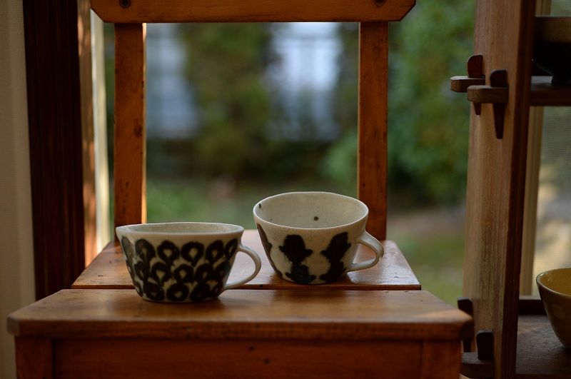 墨絵のうつわは、少しずつ模様が違っていたり
