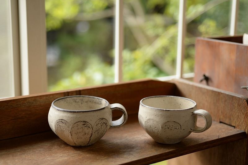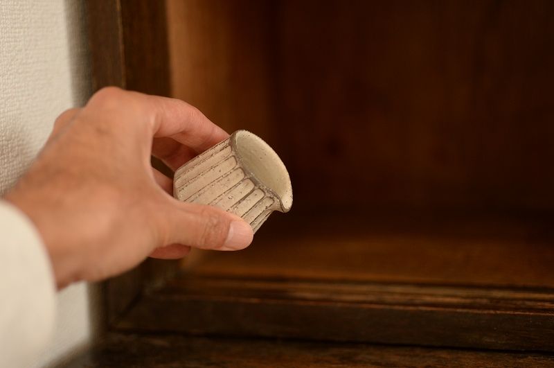 32、しのぎ丸珈琲碗 白