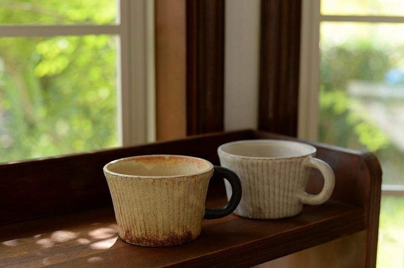 持ち手が印象的な、しのぎマグカップ