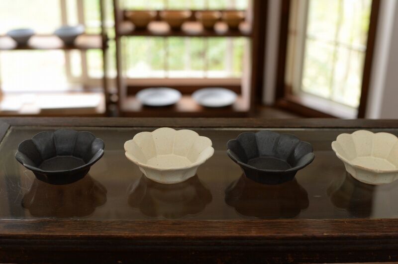 ・輪花鉢(M)白、黒釉