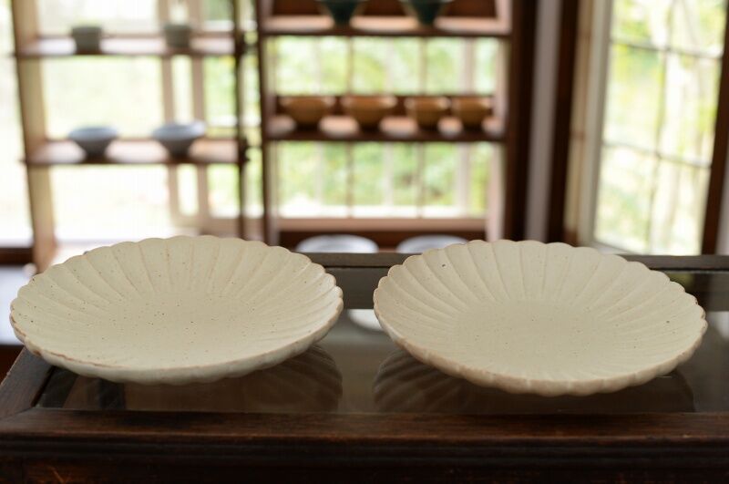 ・白釉 輪花しのぎ皿
