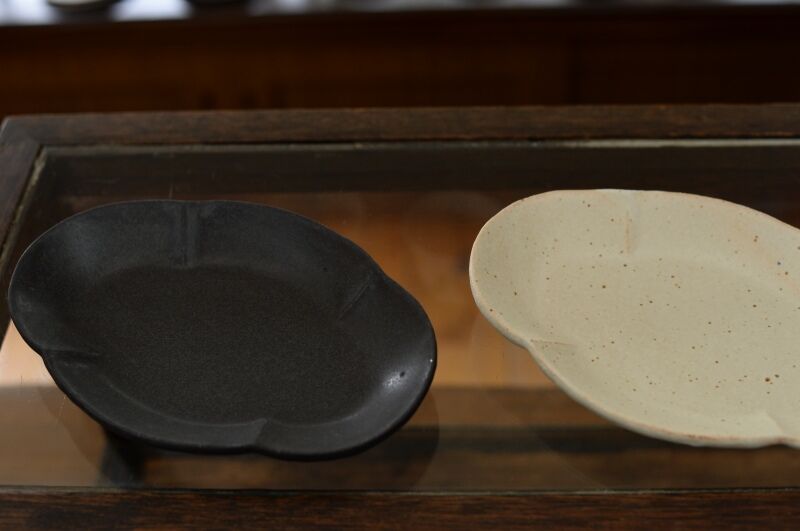 ・木瓜 楕円皿(白、黒釉)