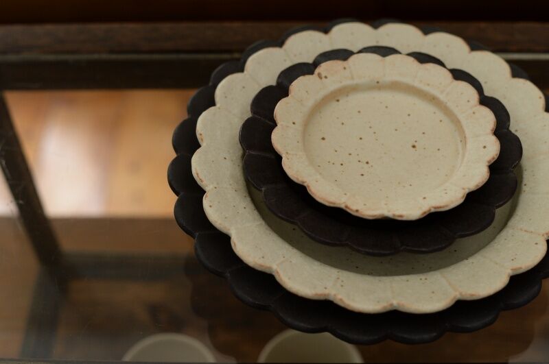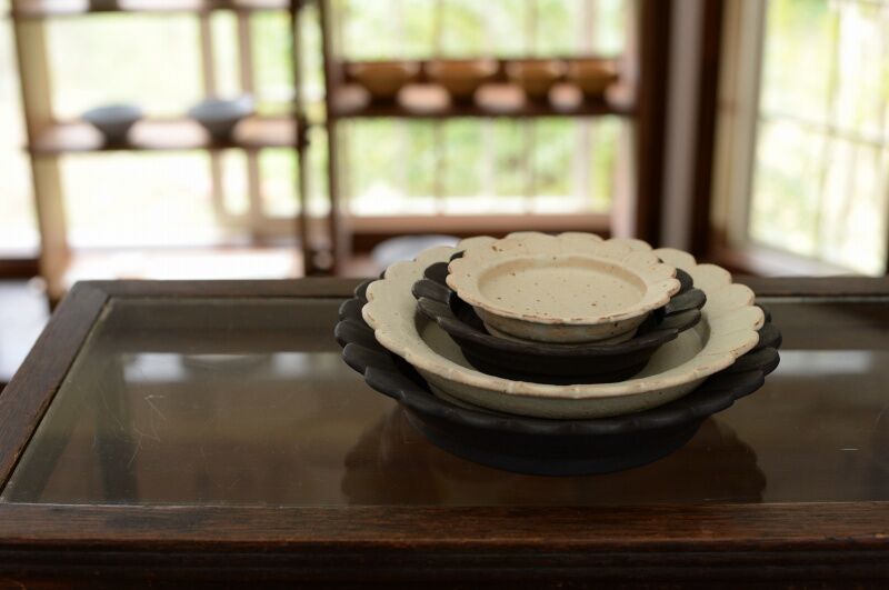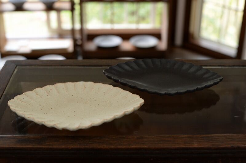 ・輪花リム皿(8寸、7寸、5寸、4寸)白、黒釉