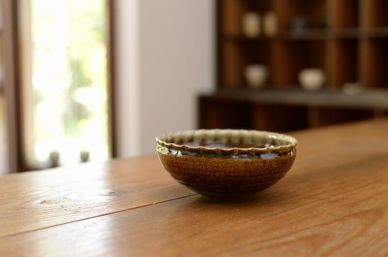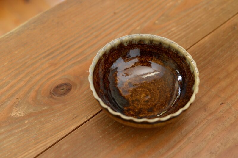 ・飴釉 輪花5寸鉢