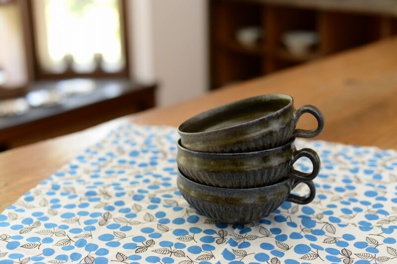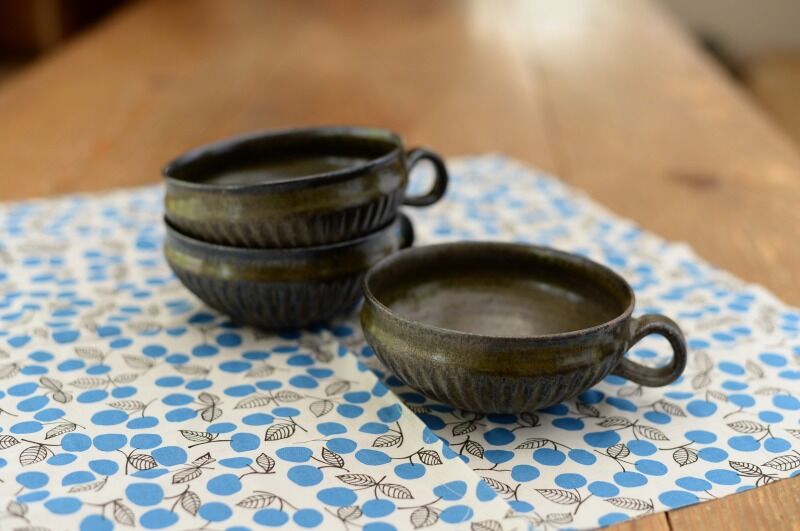 ・鉄釉 鎬スープマグ