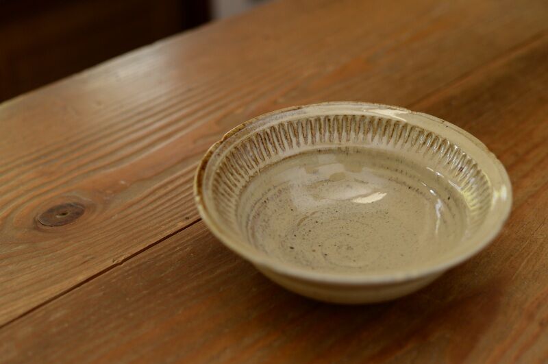・灰釉くし目片口6.5寸鉢