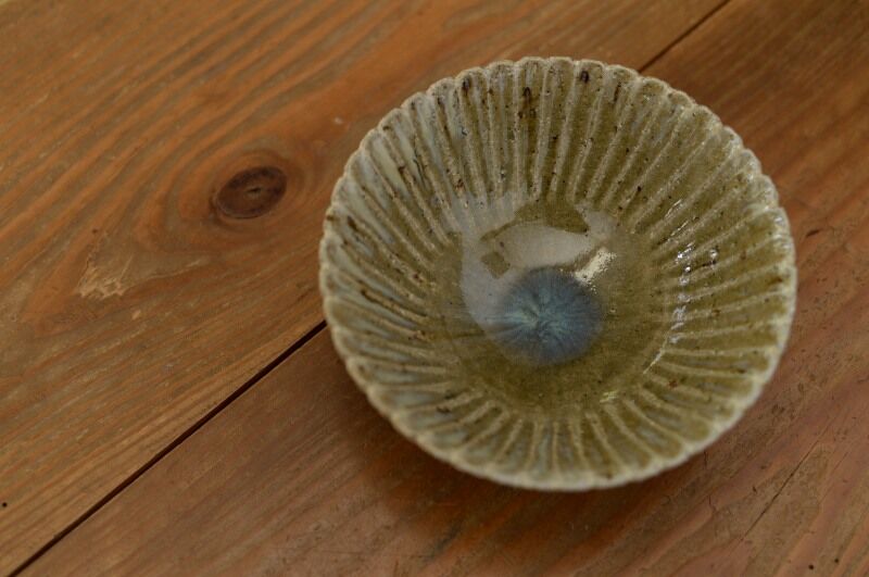 ・灰釉 鎬輪花6寸鉢