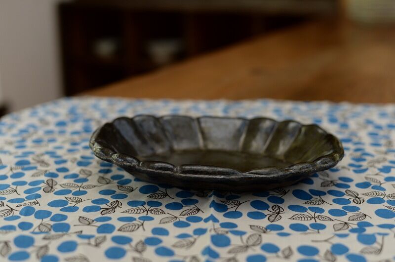 ・鉄釉 花リムオーバル皿