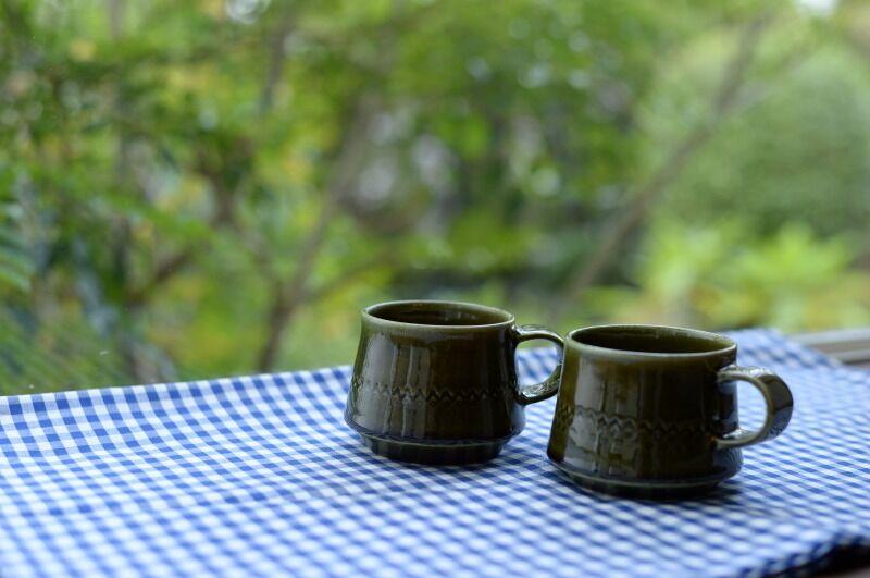20、角模様珈琲碗 オリーブ