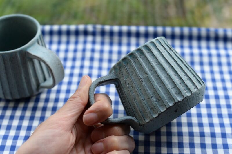 58、しのぎ角マグ 水色