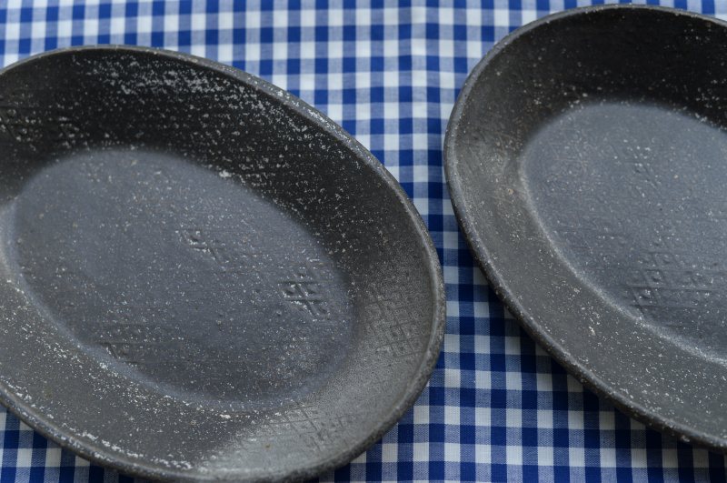 56、オーバル菱模様皿 鈍色