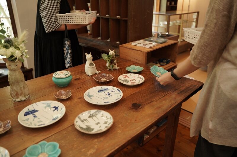 店内で楽しそうに作品を手に取り