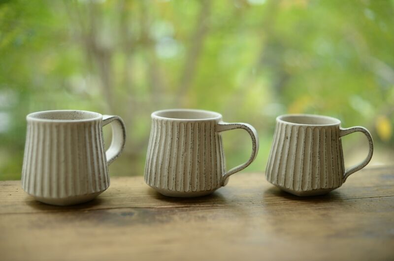白いマグカップに珈琲、紅茶、チャイ
