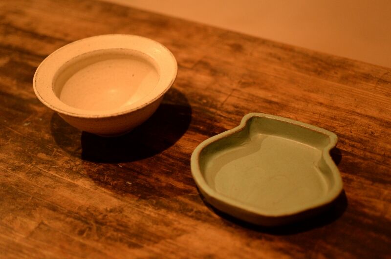 つぼ型小皿には、水色が加わり